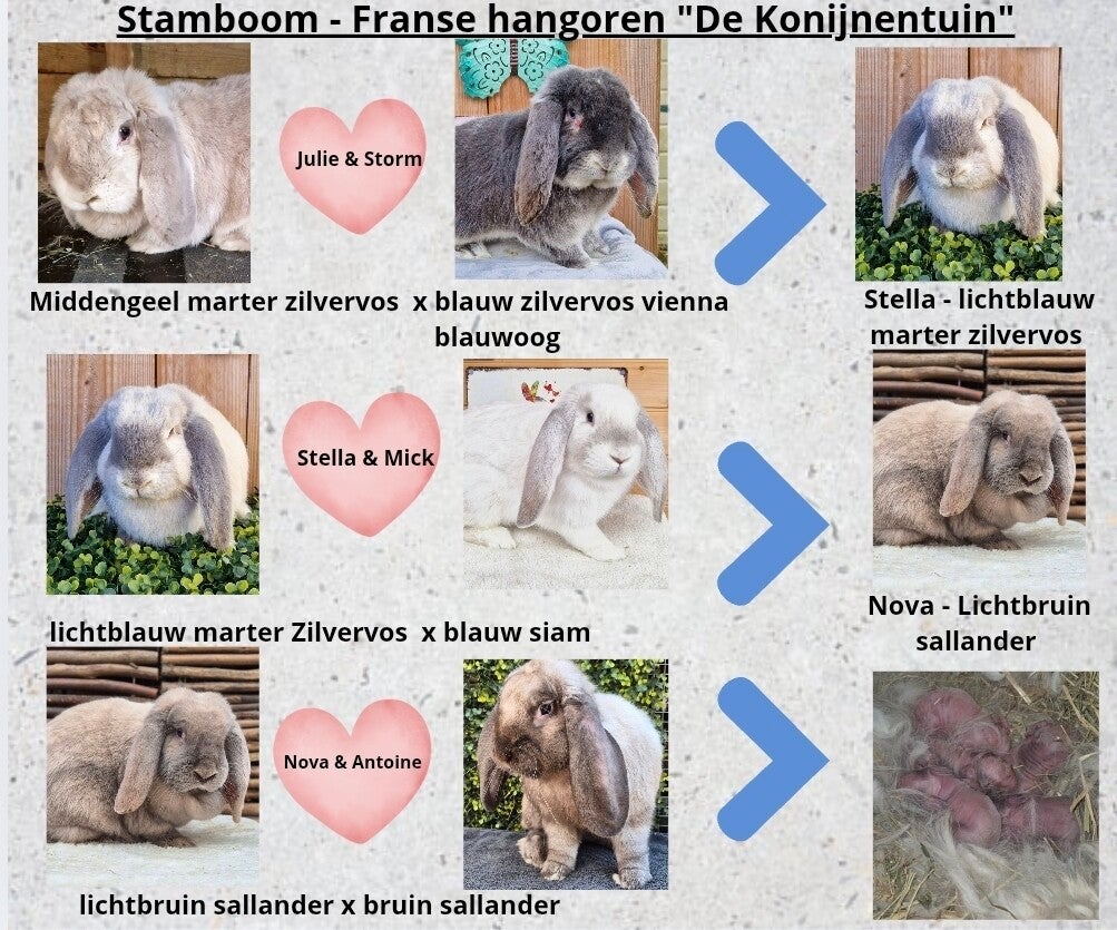 * de stamboom van Antoine kan je zien in tabblad: stambomen van onze konijnen