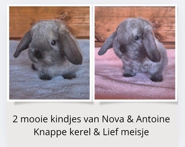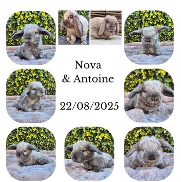 Voor de kleintjes van Nova & Antoine wordt zorgvuldig bekeken waar deze geplaatst zullen worden, omdat ze over hele goede en sterke, gezonde genen beschikken en een zeldzame kleur en typerende bouw hebben. We willen enkel het beste voor onze konijntjes, we zoeken de meest geschikte kandidaten gebaseerd op karakter van onze kleintjes, daarom is het erg belangrijk dat wij eerst de tijd nemen om hen goed te leren kennen en zullen ze pas rond de leeftijd van 6 weken ter reservatie gezet worden.