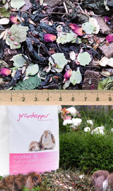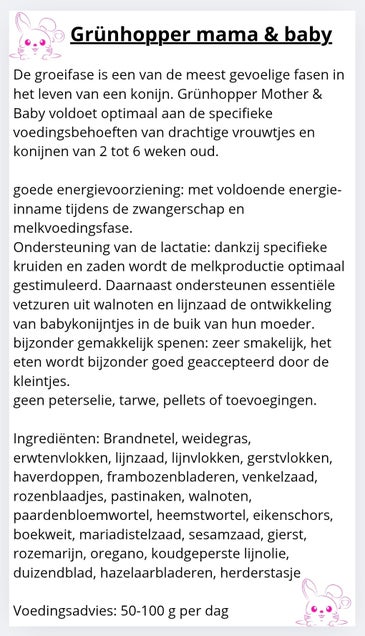 Onze mama´s en kleine opgroeiertjes worden standaard gevoed met Grünhopper mama en baby kruiden